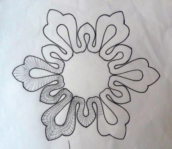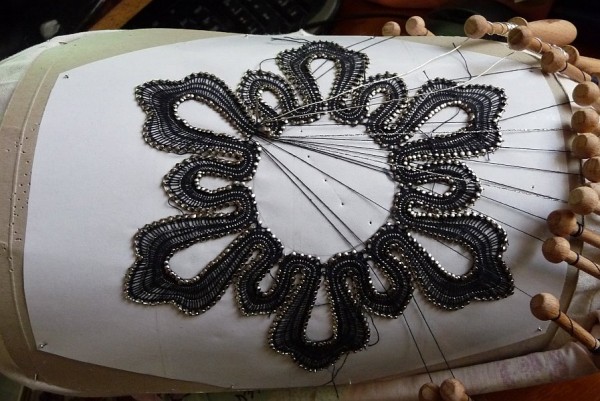 Už od začátku jsem věděla, že vzniklou krajku budu následně tvarovat, tak jsem rovnou do okraje vpaličkovala slabý stříbrný drátek, aby krajka později držela tvar.